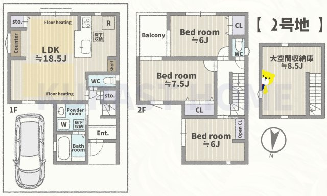 8.5帖の大空間収納庫や床暖房×2面など収納・設備が充実!