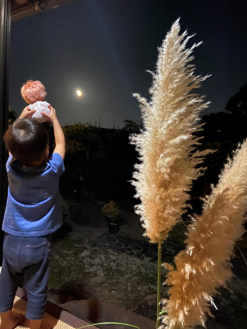 メルちゃんにお月様を見せてあげてました(^^)/~~~