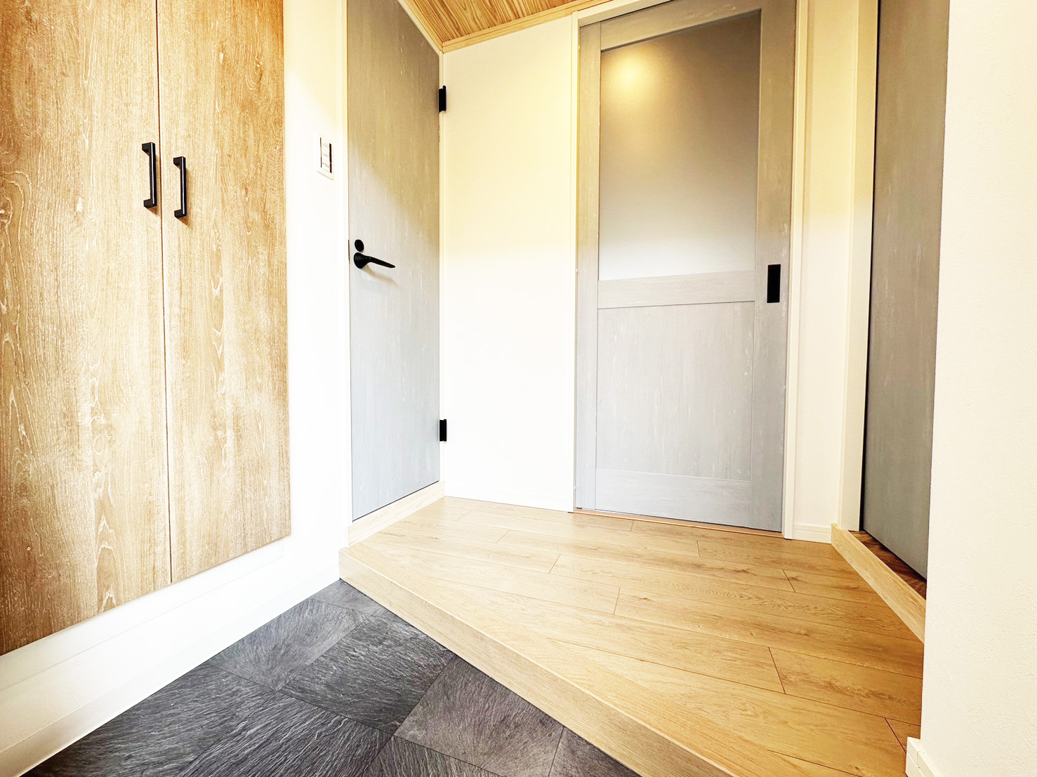 こちらの物件ではグレーニュアンスの入ったライトブルーを扉のカラーに取り入れ、お家のアクセントにしています。