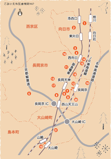 ・かかりつけ医がみつけやすいように、乙訓エリアの小児科マップもあります。