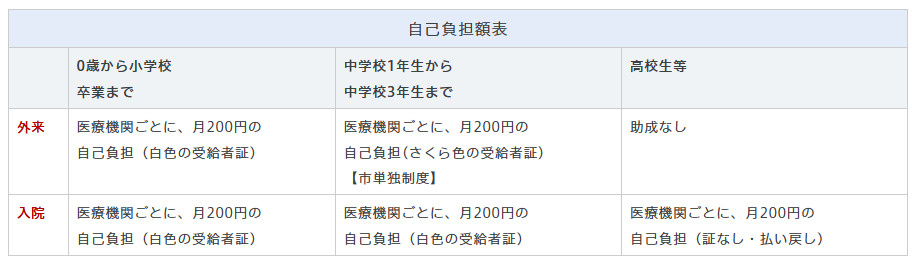 中学3年生までは医療機関ごとの自己負担額が入院・外来それぞれ月200円まで!