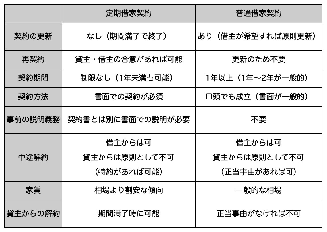 一方で、契約期間が終わると原則退去する必要があり、住み続けるには貸主の合意を得て「再契約」を結ばなければなりません。