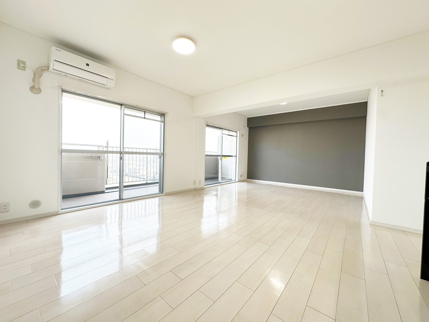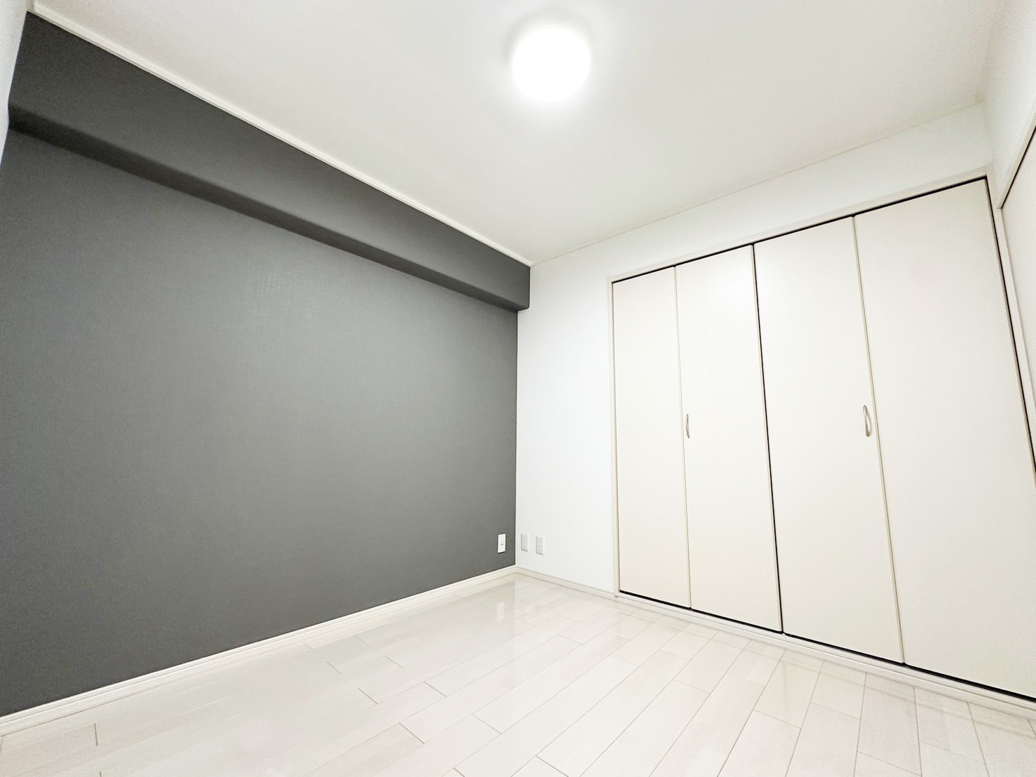 そこで、この物件では一面だけダークグレーのアクセントを入れてメリハリをつけています。