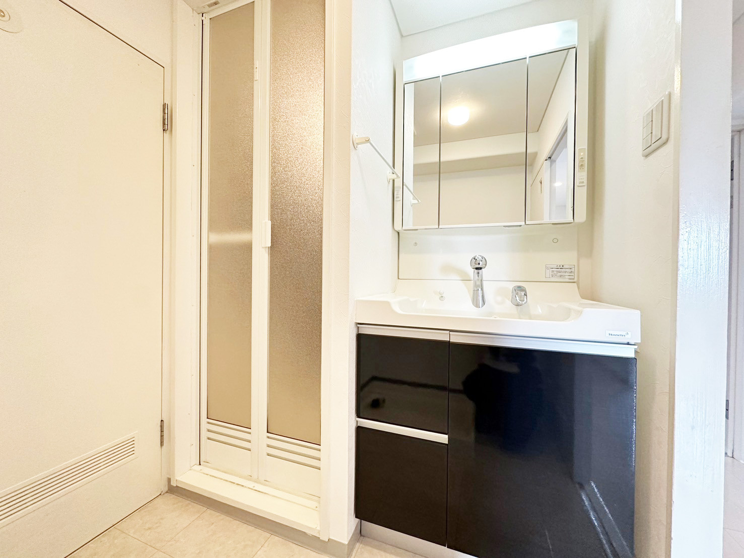 洗面台もブラックの鏡面パネルデザイン!