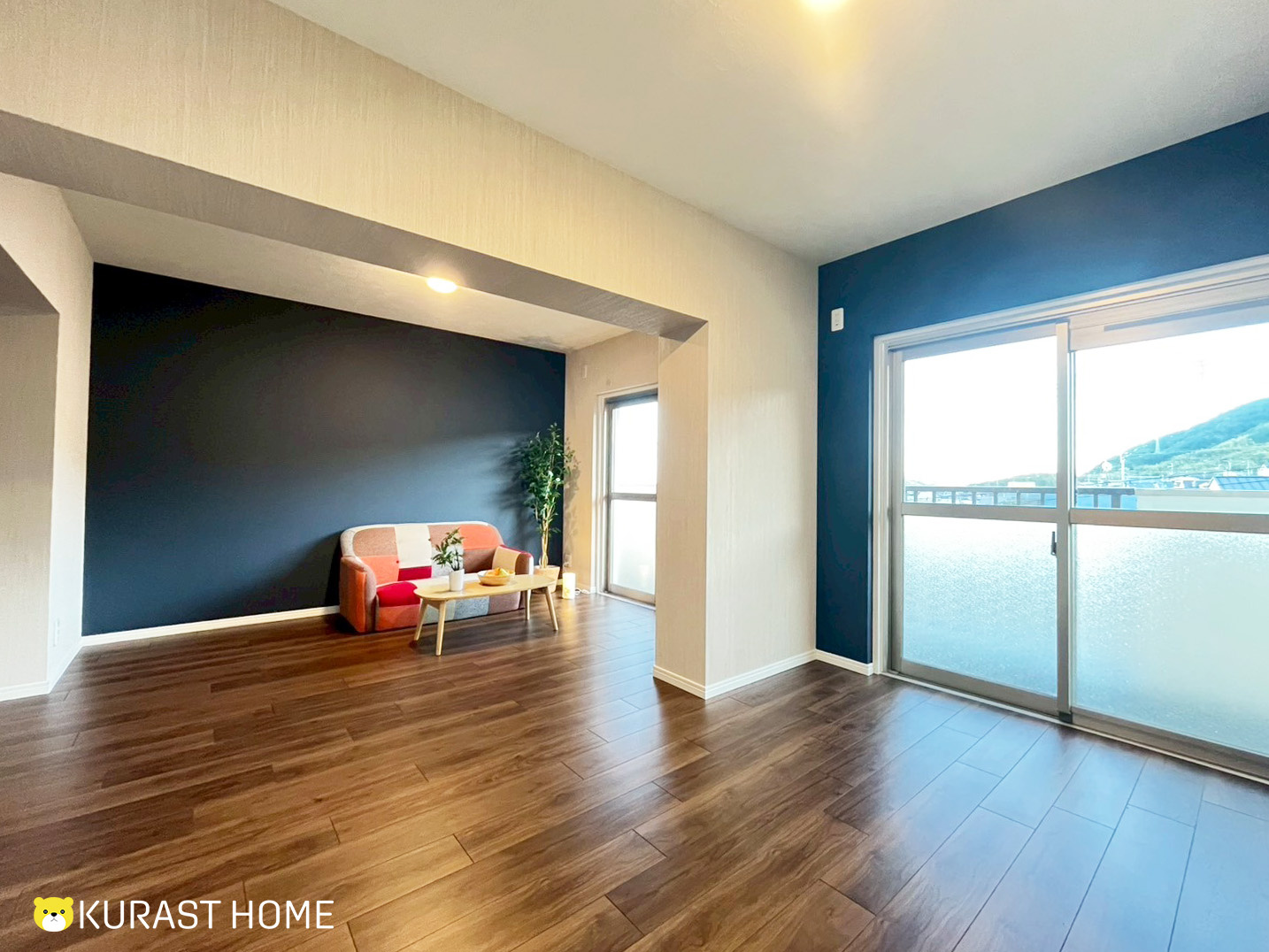 特にLDKにはスミクロのアクセントクロスが使われていることもあり 空間にぐっと奥行が出ています。