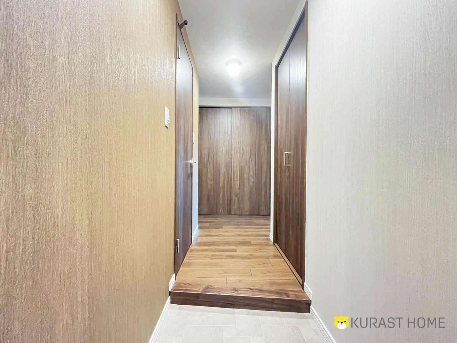 建具と床材の木目の色に統一感があって、高級感があり、ちょっとレトロな雰囲気が素敵です!