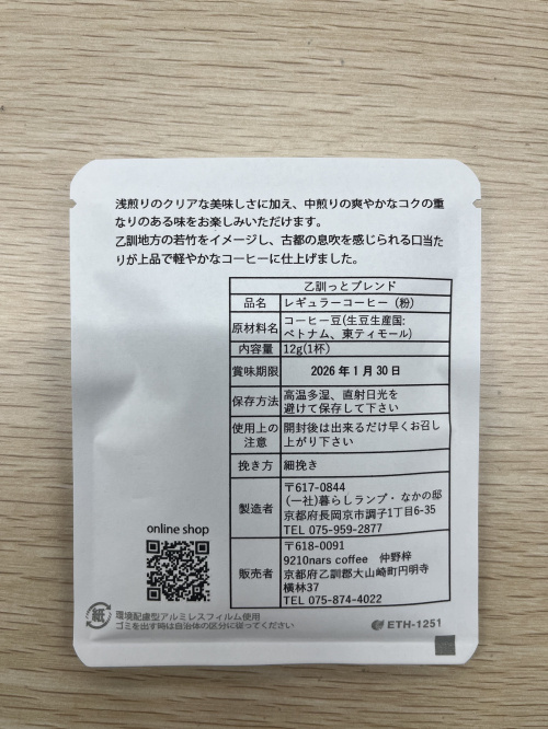 先日、京都の乙訓地域をイメージしたコーヒーブレンドを頂きました。